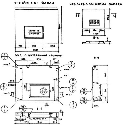 НР2-34.29.3-5л-1 Наружная стеновая панель рядовая по Серии 1.132-1.